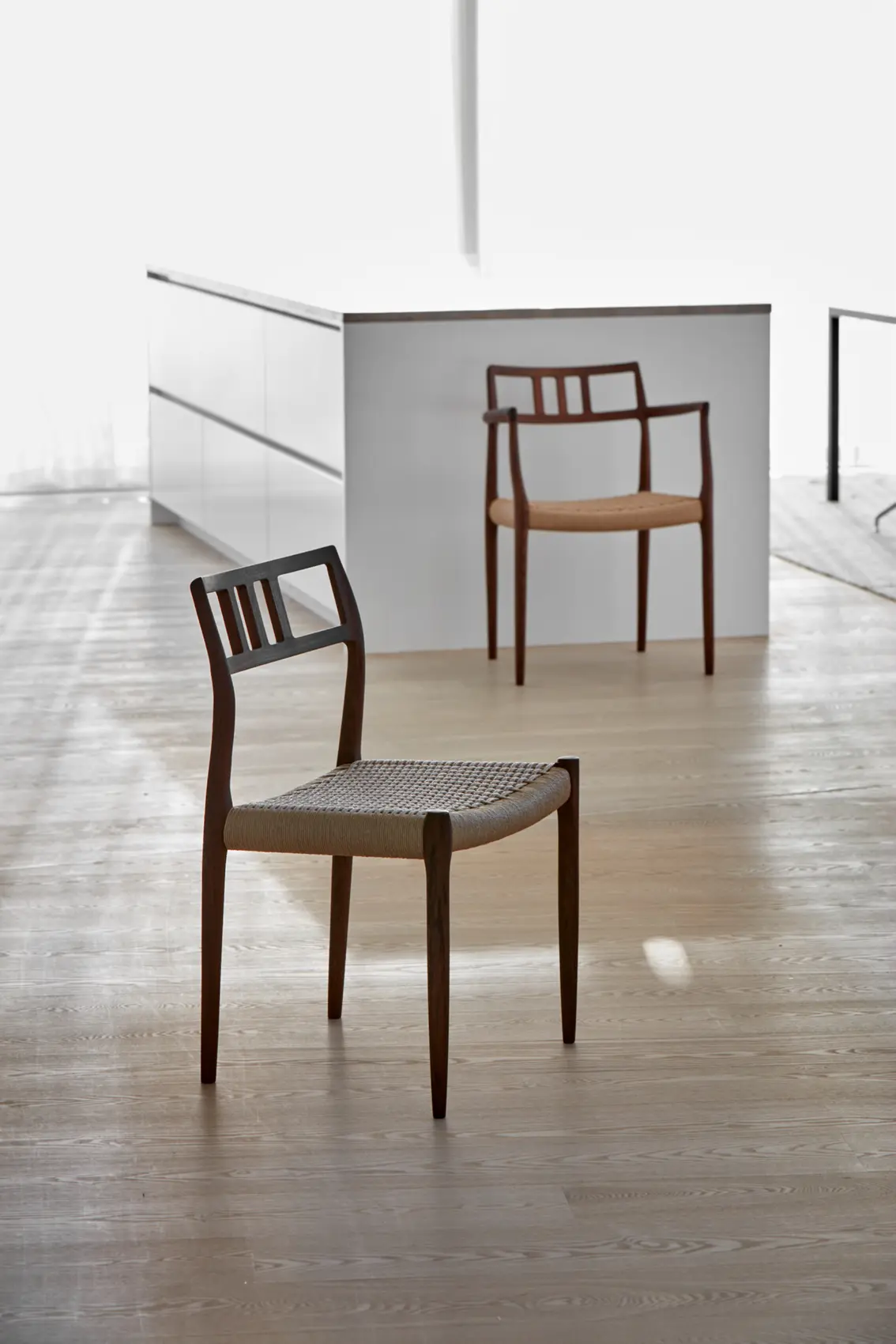 70年代には世界中の大使館で人気を誇る”Embassy Chair(大使館チェア)”という愛称で親しまれているModel82チェアも生まれ、Niels Otto Møllerはデンマーク家具メーカー協会賞を受賞します。日本への輸出が始まったのもこの頃で、Niels Otto Møllerの末息子Jorgen Henrik Møller(ヨーゲン・ヘンリック・モラー)が1974年にデザインしたModel401,402,404チェアは日本からアメリカに至るまでの教会、大聖堂、礼拝堂などで見ることができます。1980年代、Niels Otto Møllerが亡くなり、残された2人の息子と妻はこれまでと同様に家族経営のこの会社を繋げていきます。しかし94年にリーダーシップを引継いでいた長男Jens Ole Møller(イェンス・オーレ・モラー)が急逝、Jorgen Henrik Møllerが指揮を引き継ぎました。