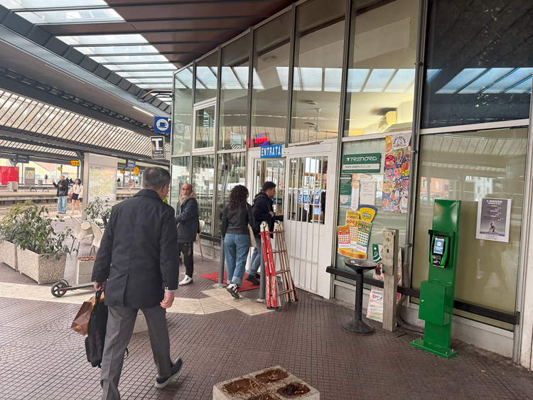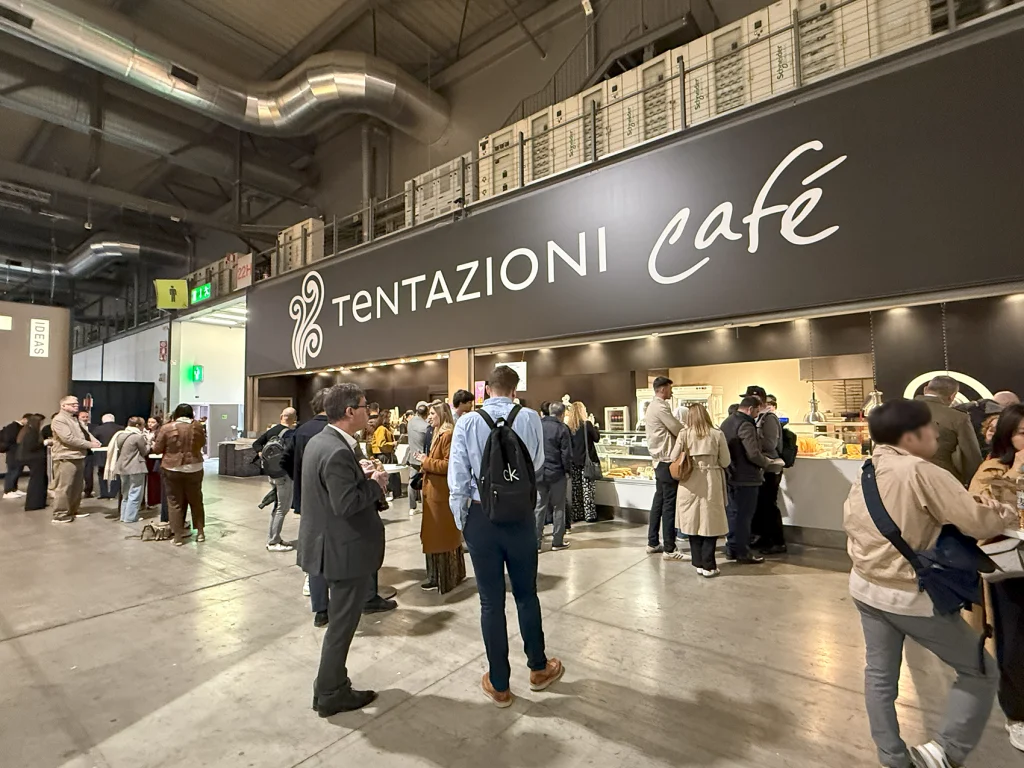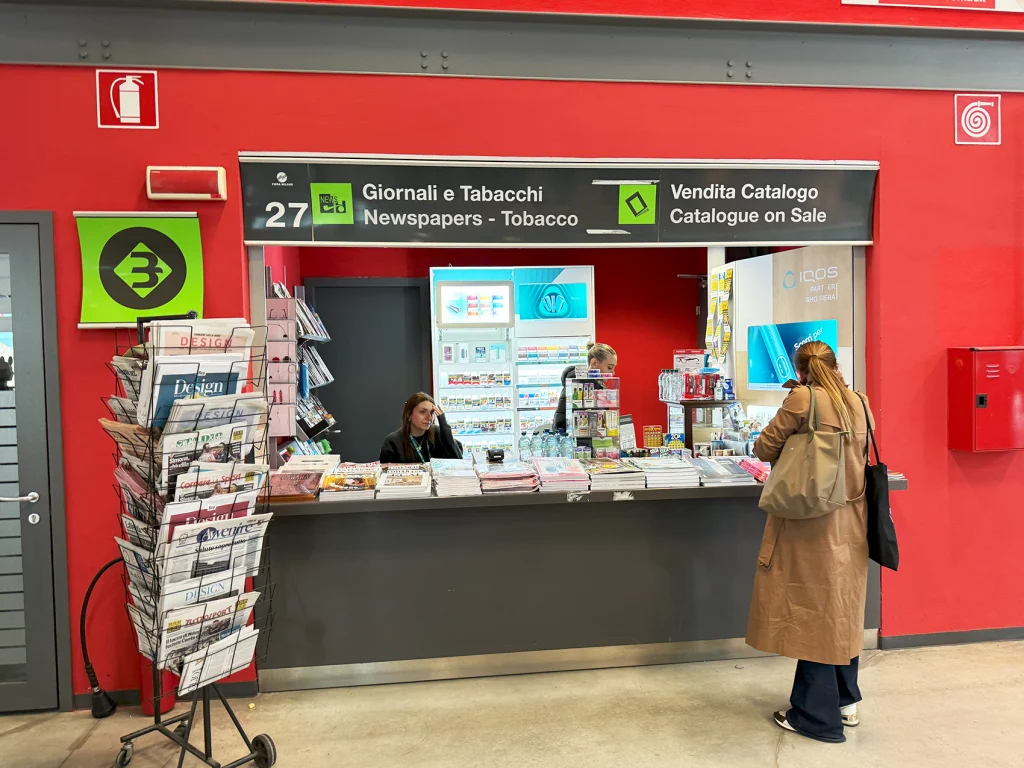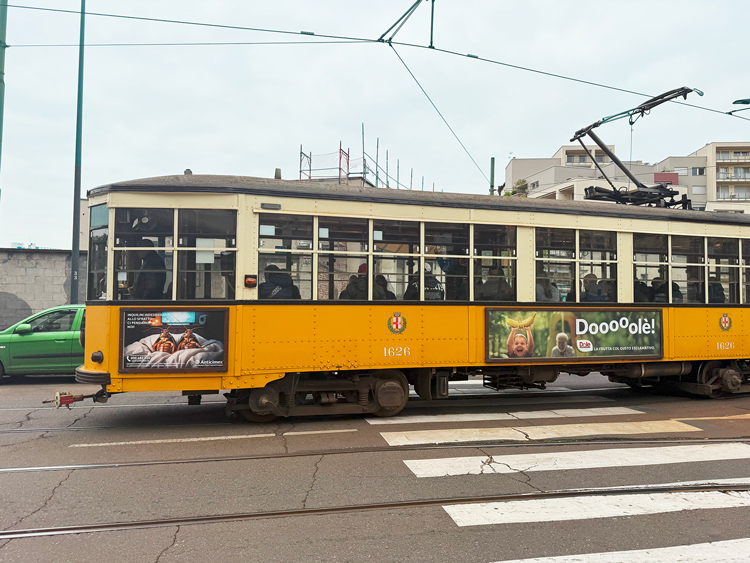 滞在2日目。いよいよミラノサローネが開催される当日となります。ホテル最寄りのP.Le Santorre Di Santarosa(サントッレ・ディ・サンタローザ)という駅に向かってみると、ここは路面電車の停車駅でした。とても可愛らしい黄色い電車が路を滑ってやってきます。こちらに乗り込み、Milano Certosa(ミラノ・チェルトーザ)駅で下車、駅構内のカフェに併設された売店で列車の切符を買います。Trenordという電車に乗ると、会場のあるRho Fiera Milano(ロー・フィエラ・ミラノ)まで1駅、4分で到着しました。