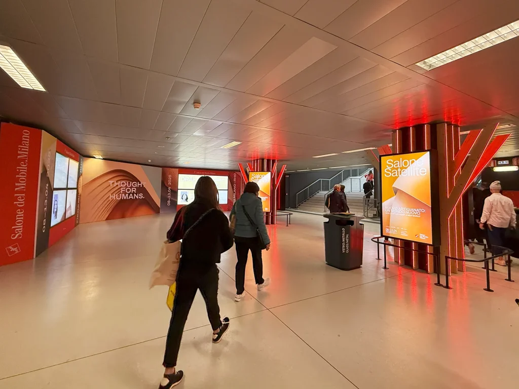 ミラノサローネの会場面積は約40万平方メートル、凡そ東京ドーム8個分以上の大きさの敷地の中、中央の通路に沿って8つの大きな建物が左右に配置されており、それぞれが更に2つのHallに仕切られています。Hall内のブランド一つずつの展示場はStandと呼ばれています。一昨年のミラノサローネ参加の際、私たちはHallをまたぐ移動が多かった為、かなり疲弊が大きかった感がありましたので、今回は一つのHallを訪れた際は基本的にその中の展示Standを隈なく見切る!という方法に切り替えた為、比較的効率良く廻ることが出来ました。