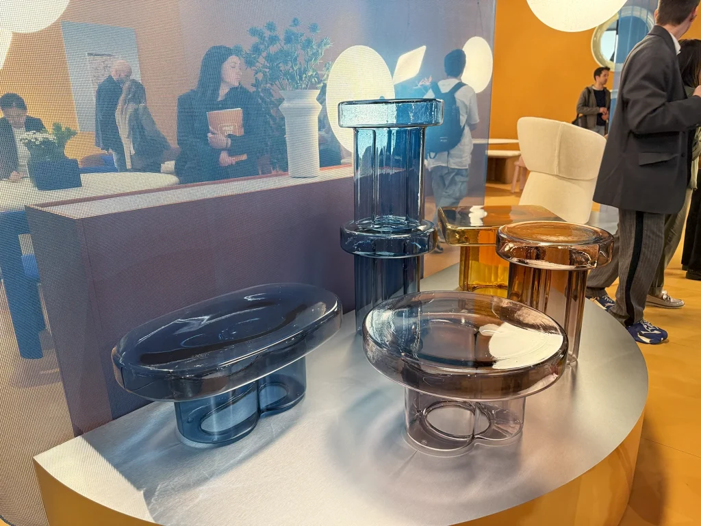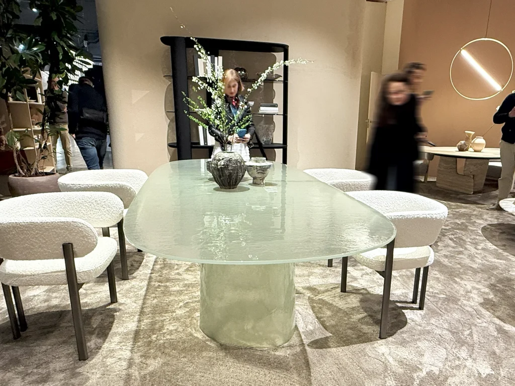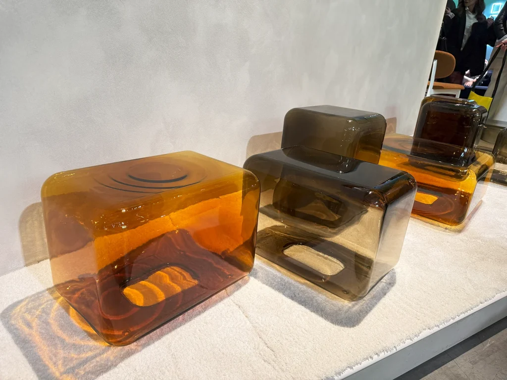 一昨年のミラノサローネ、昨年のコペンハーゲンでの3daysdesignに続いてminiforms(ミニフォームズ)のCEOにも、またお会いすることが出来ました。今年の新作ガラスローテーブルは”Striche”。miniformsの拠点であるヴェネツィアの言葉で”線”や”縞”を意味する言葉だそうです。ムラーノガラスで作られ、とても可愛いフォルムと色、そしてグミのような質感が魅力です。勿論人気のアイコン”SODA”(ソーダ)も健在でした!ちなみにこの”SODA”と類似したタイプのガラスローテーブルをあちこちで見かけました。例えばAcerbis(アチェルビス)の”Lokum”、Tonelli Design(トネリデザイン)の”Oasis”、maxdesign(マックスデザイン)の”ICE”など。