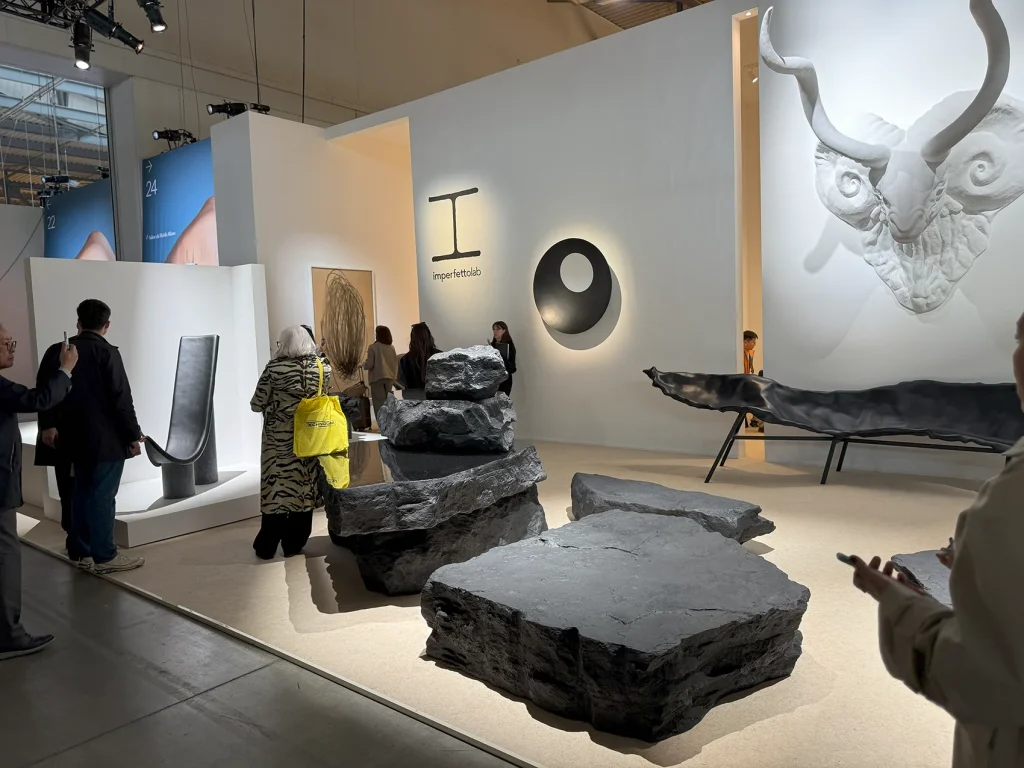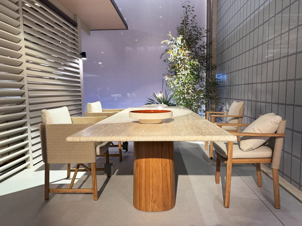 最初に訪れたブースはHall 03のNature Design(ネイチャー・デザイン)。Verona(ヴェローナ)にあるメーカーです。以前お客様をイタリアに案内した際に彼らのショールームに展示されていたチーク材の”根”のオブジェをお気に入りになり購入した経緯もあり、担当の方とお話して新作などを撮影させてもらいました。その名の通り「自然の宝物を大切にすることで自然を守り、時を刻む製品を作ります。」と謳う彼ら。その作品はどれもどっしりと地に根差した落ち着いた雰囲気で、自然への敬意を感じるものでした。