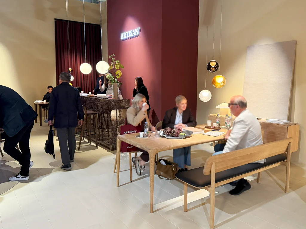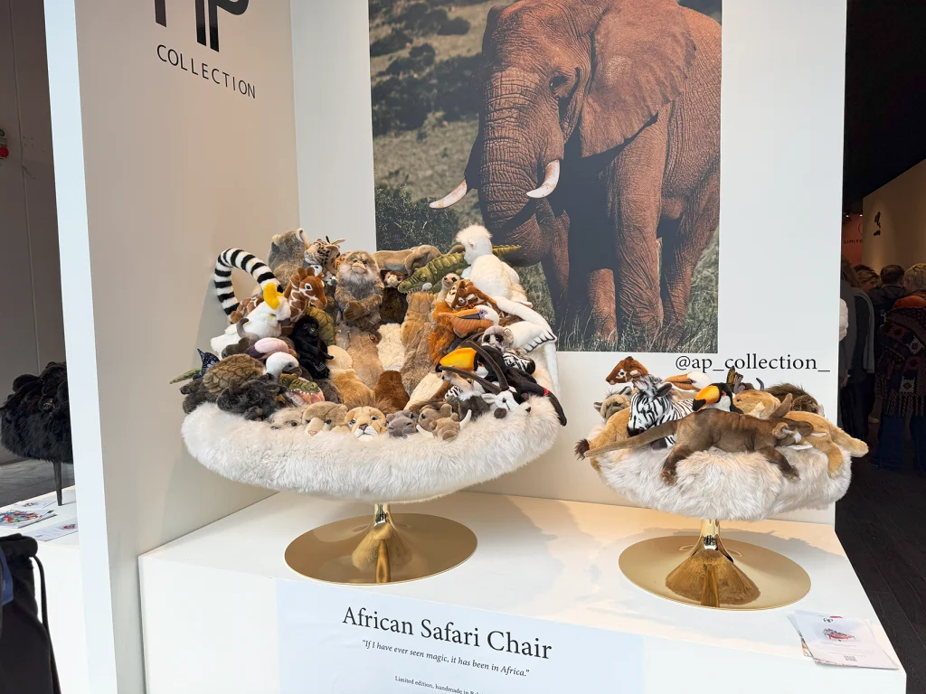 Hall18のAPcollection(APコレクション)の動物のぬいぐるみ達が盛り込まれたチェアは他では見られないものでした…!彼らはベルギーのブランドで、チェアは一つ一つハンドメイドで、詰め物は主にペットボトルの廃棄物をリサイクルして作られます。3ヶ月かけて自信のチェアをカスタマイズすることも出来るそうです。一方、静かな色合いのARTISAN(アルティザン)の家具は”木”の素材が美しく映える、ほっとさせられるような質感を醸し出していました。