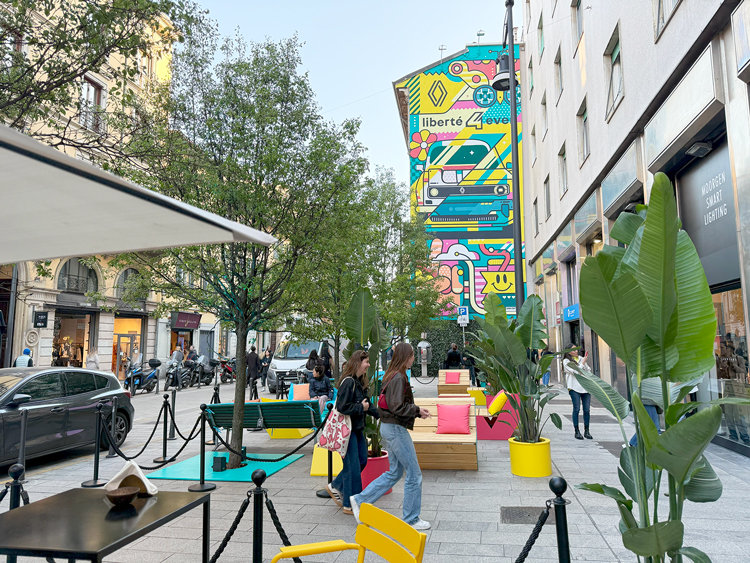 コーヒーをいただきながらRadekさんと有意義なミーティングの時間を持った後に会場を出て、少し運河に向かい歩くとARMANIの本社を発見。こちらの建物は安藤忠雄が建築を手がけたといいます。ARMANIの建物を両側に従えて静かに続く、背の高い樹木の並木道がとても綺麗でした。一方で、街中では若者達が楽し気に溢れてあちこちで催し物の開催中のようでした。盛沢山の滞在2日目でした。