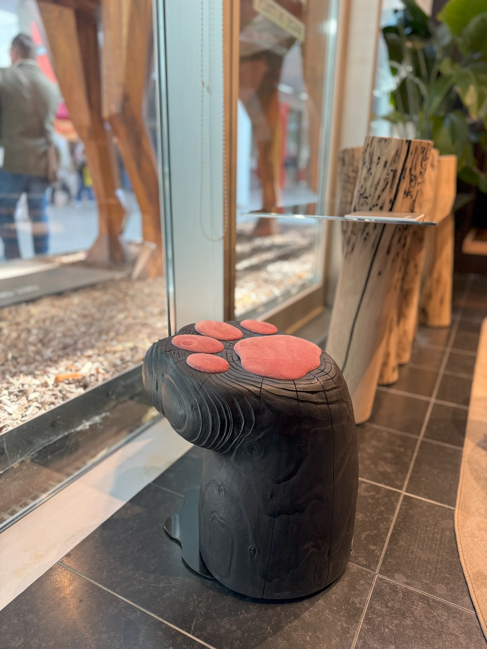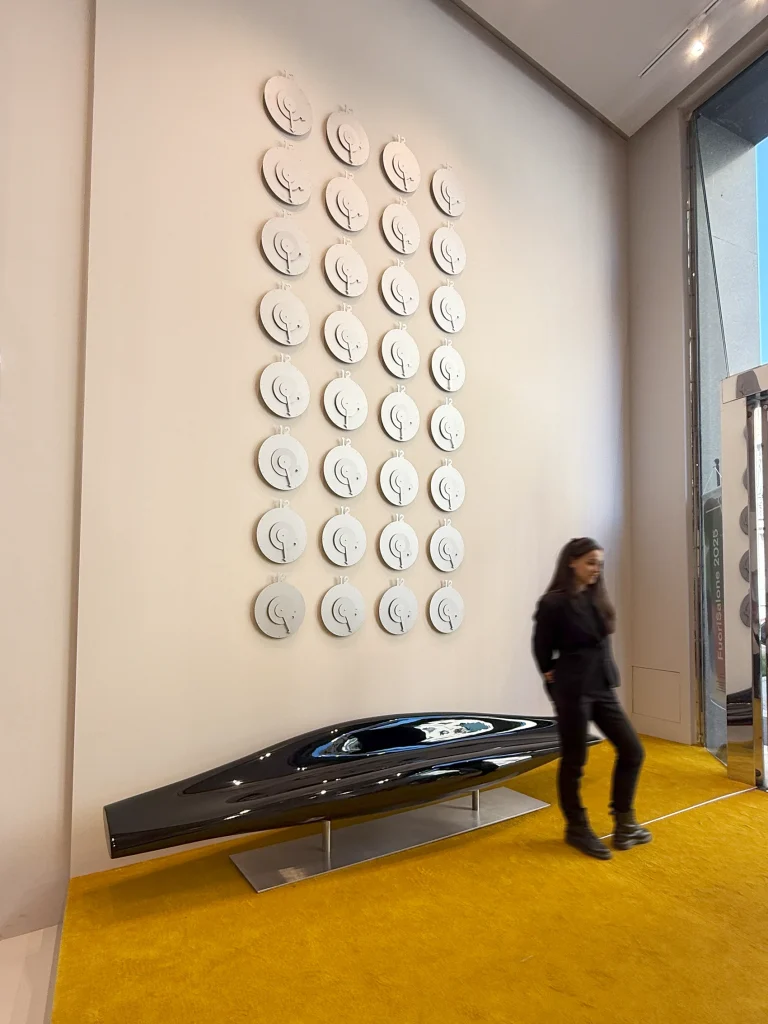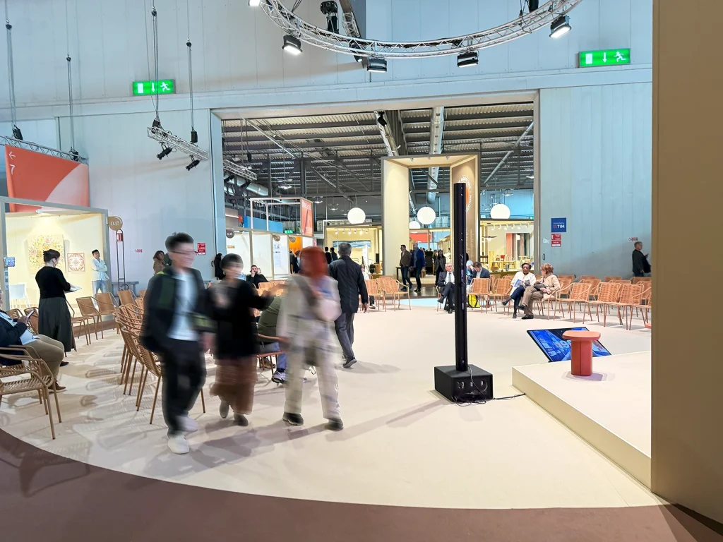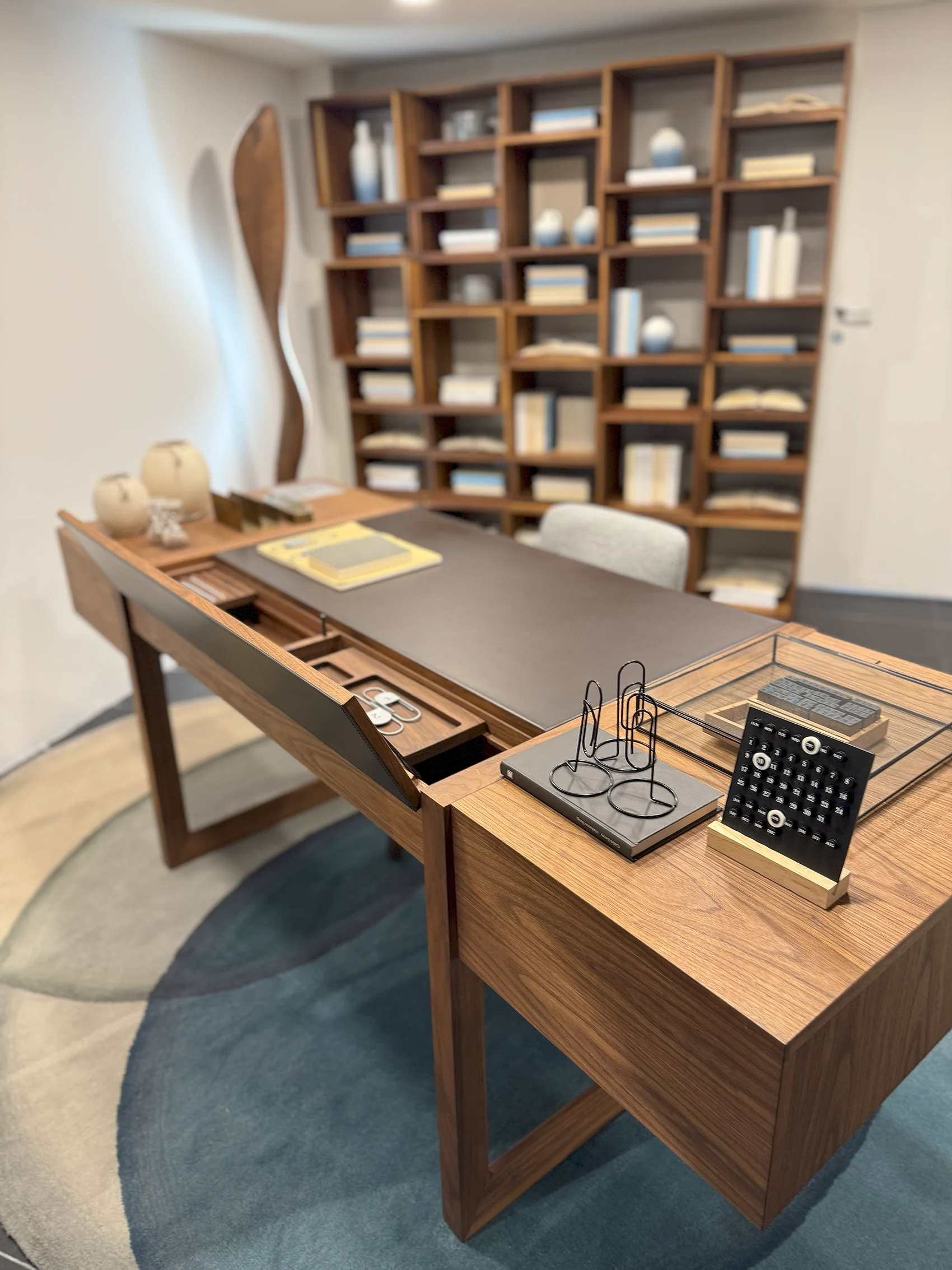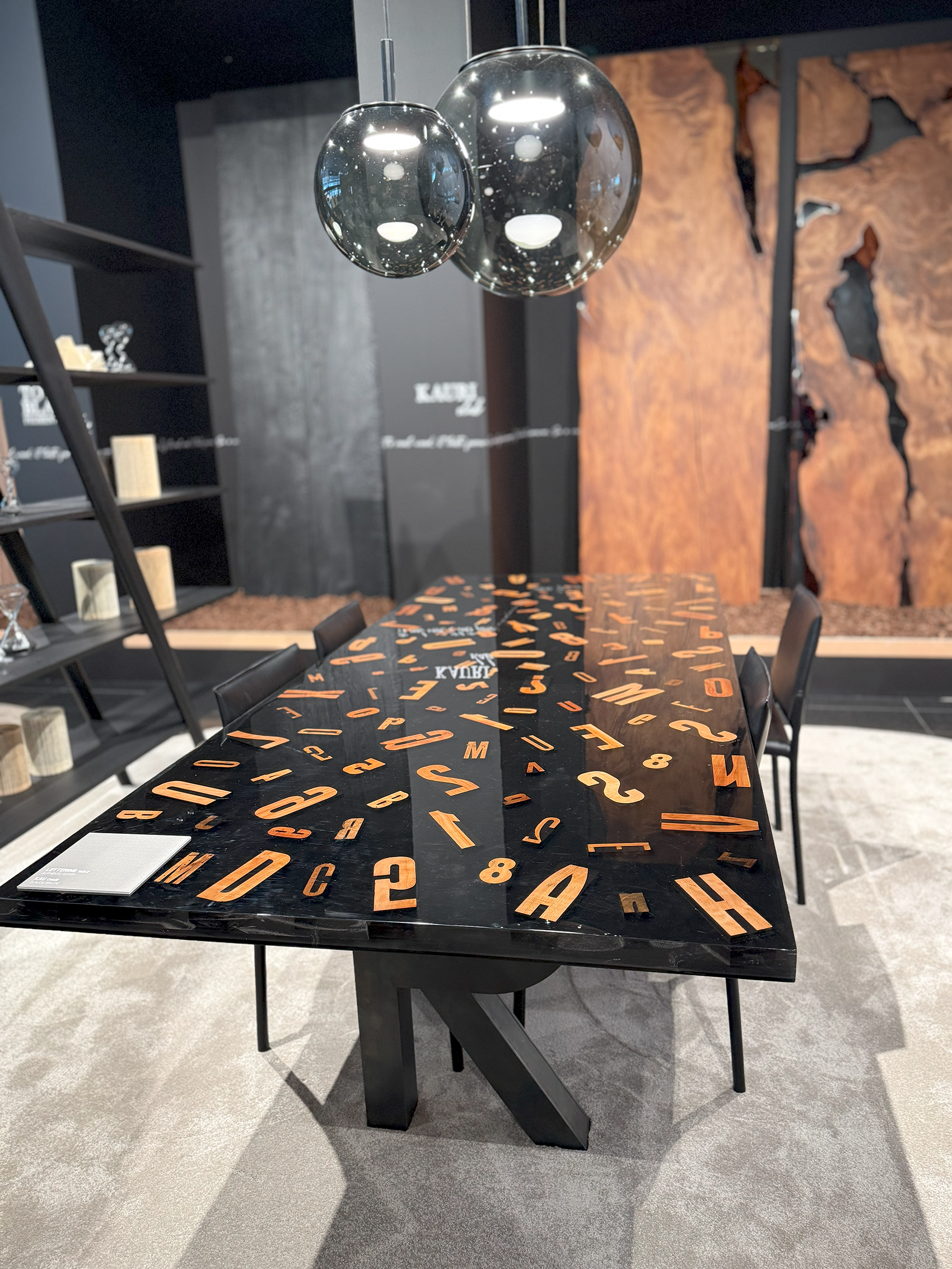 私たちにとってのミラノサローネ会場参加3日目、最終日の本日。まずは今回も別棟の建物一棟丸々使用して展示していたRiva1920(リーヴァ)に入っていきます。Kauri(カウリ)という、ニュージーランドの亜熱帯気候でのみ生育する”森の王”と呼ばれる希少な無垢材を使用した贅沢なテーブルはまさに芸術作品です。また、はりねずみの形の”RICCIO”ベンチや櫛の形のコートラック”LA PETTINEUSE”、ブラシをモチーフにしたベンチ”GIACINTO”などは”Riva節”全開の2025年新作です。”木”という素材に密接に寄り添って制作を続けている彼らのリスペクトを感じました。