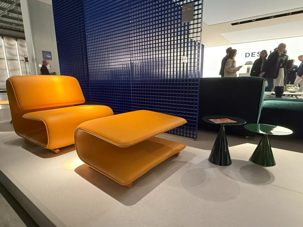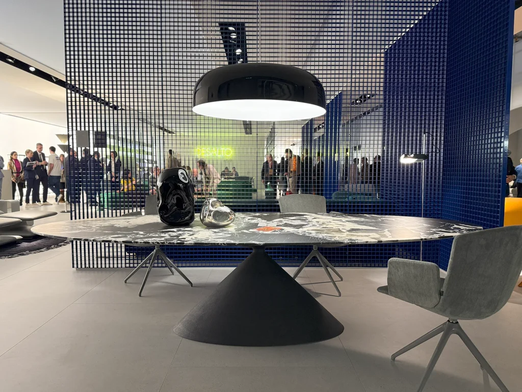 Hall 09のDESALTO(デサルト)では、2023年に登場した”Maxi Clay”の、天板が大理石のバージョンが堂々と出迎え、全体として敢えてダークに抑えたトーンのStandが非常に洗練された空間を創り出していました。そしてラッカー塗装の”Micro Clay”があちこちにポップに展示され、インパクトを添えています。2024年作品、Francesco Rotaの”Clip”シーティングシステムも斬新でスタイリッシュでした。