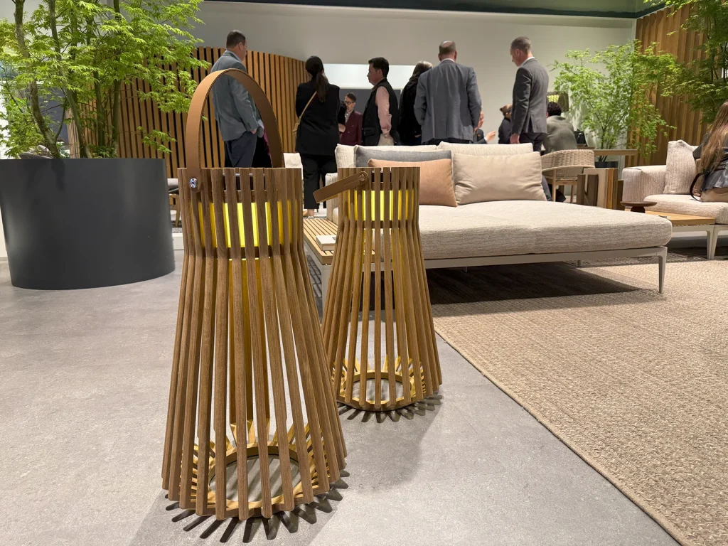 今回もドイツのガーデンファニチャーブランド、GLOSTER(グロスター)のアウトドアはその質の高さを見せつけていました。”Deck” CollectionのDining Tableや”Ambient”シリーズの”Ray”アウトドアランプなど、素材の色合いが美しく映えます。