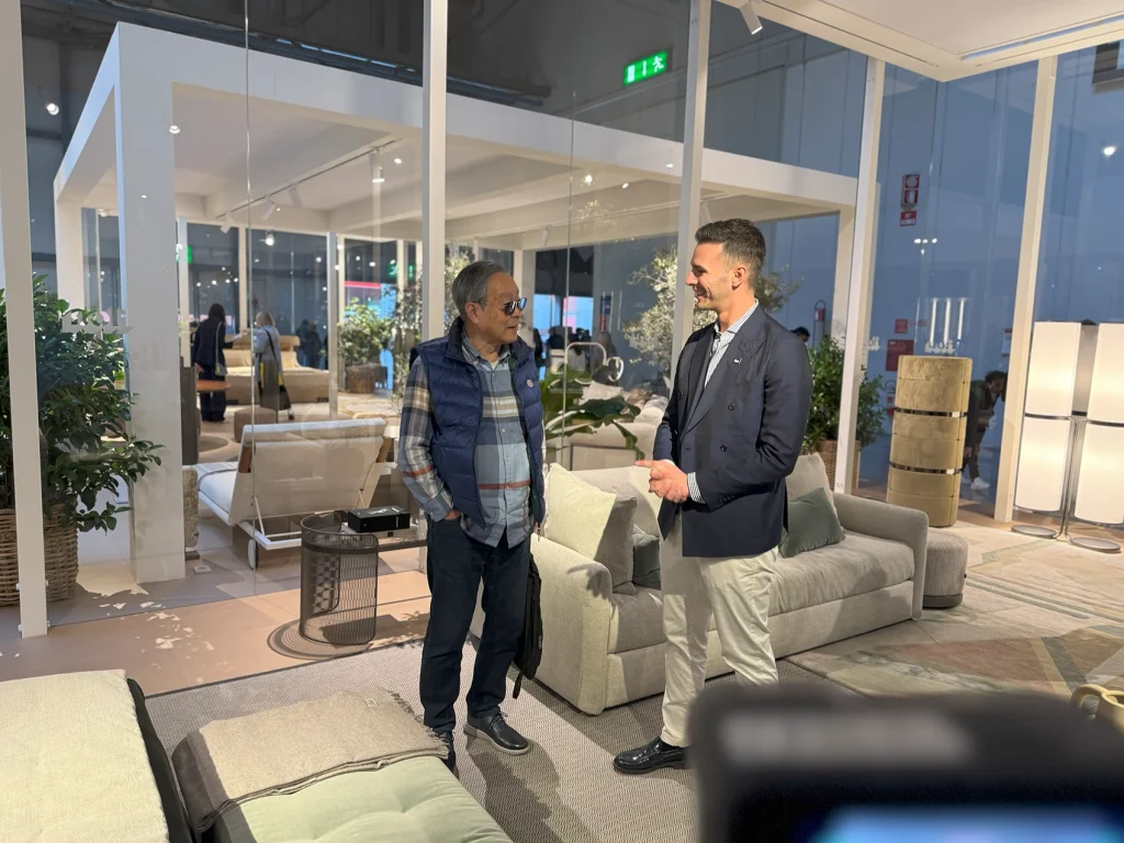同じくspiga通りのGiorgetti(ジョルジェッティ)を訪ねます。一昨年こちらで出会ったアジア・オセアニア地域の責任者の方とも再会できました。今回の展示の目玉は、Giorgettiのクリエイティブ・ディレクターGiancarlo BosioとMaserati(マセラッティ)のヘッド・オブ・デザインKlaus Busseのクリエイティブチームによって連携して開発された”Giorgetti Maserati Edition interior collection”。厳かに並ぶソファやラウンジチェア、サイドテーブルなどのコレクションが揃った空間は、まるで最高級の車に乗っているかのような感覚。大勢の来訪者が訪れ、思い思いに撮影していました。