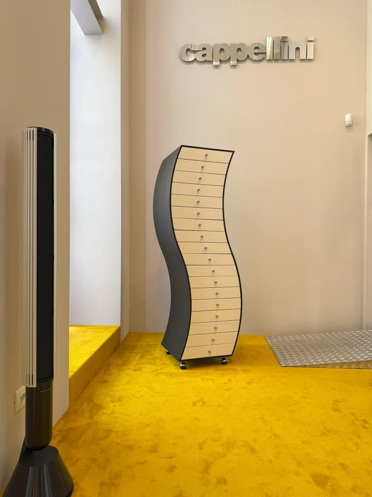 ミラノ地下鉄1線のSan Babila(サン・バビラ)駅から徒歩でCappellini(カッペリーニ)のショールームへ。一昨年に訪れた際に”HOMAGE TO SHIRO”としてまとまった展示がされていた倉俣史朗作品が、今回はショールームのあちこちに点在する形でそれぞれの空間を引き締めており、一つ一つのデザインの力強さを再認識致しました。