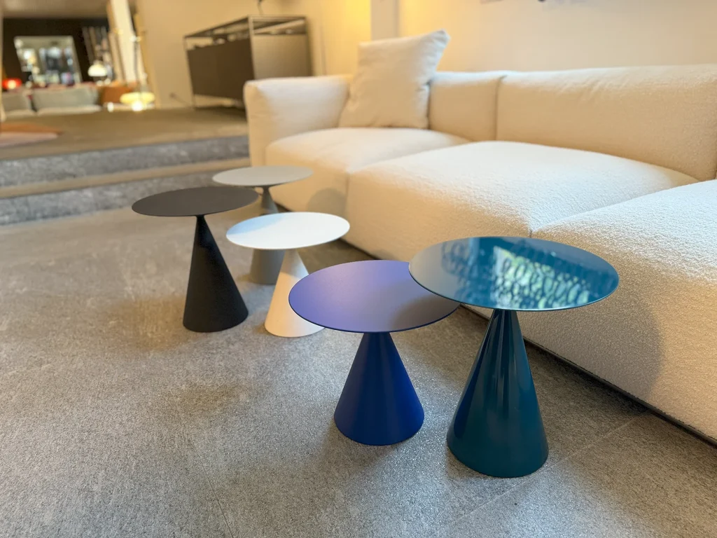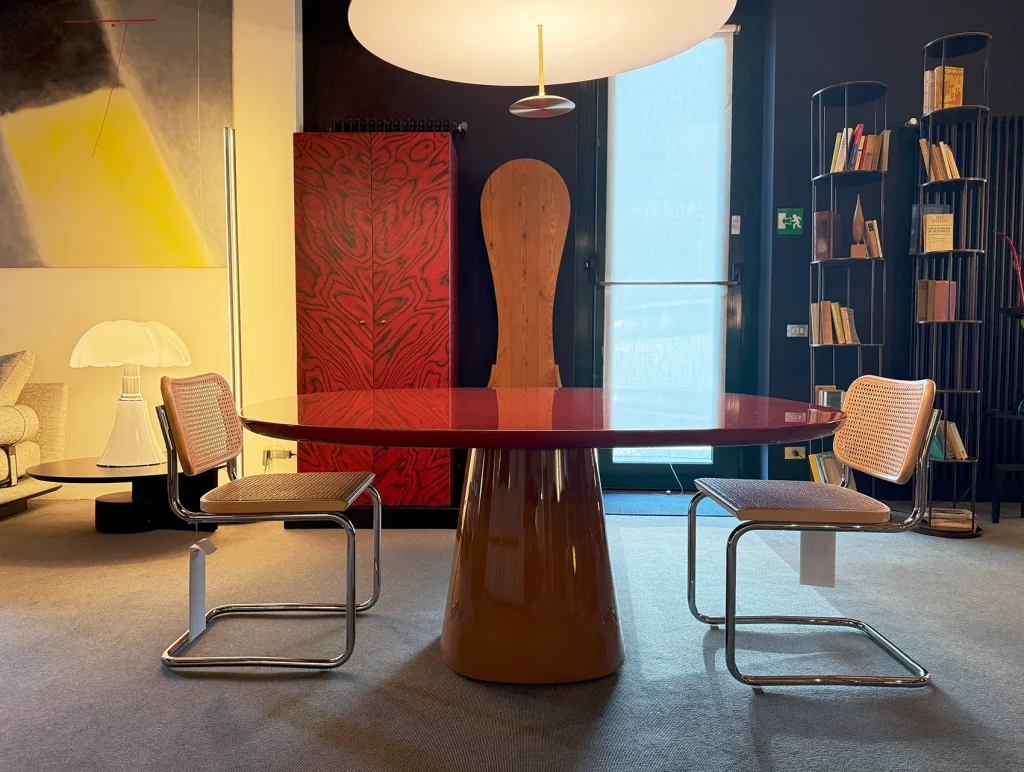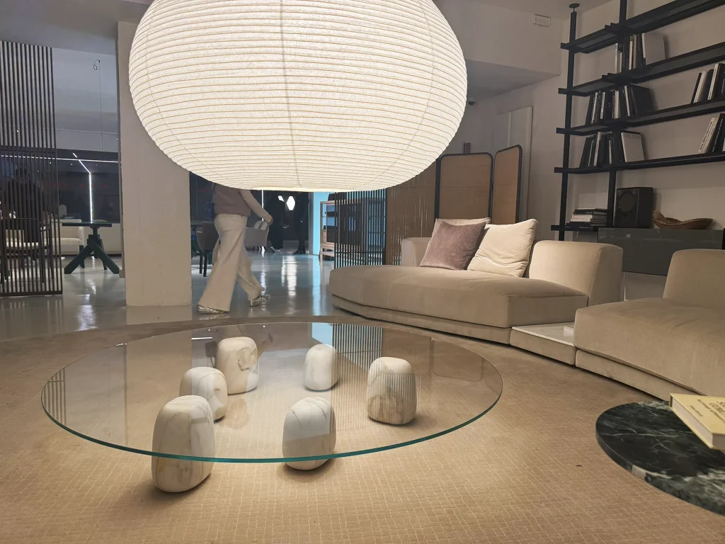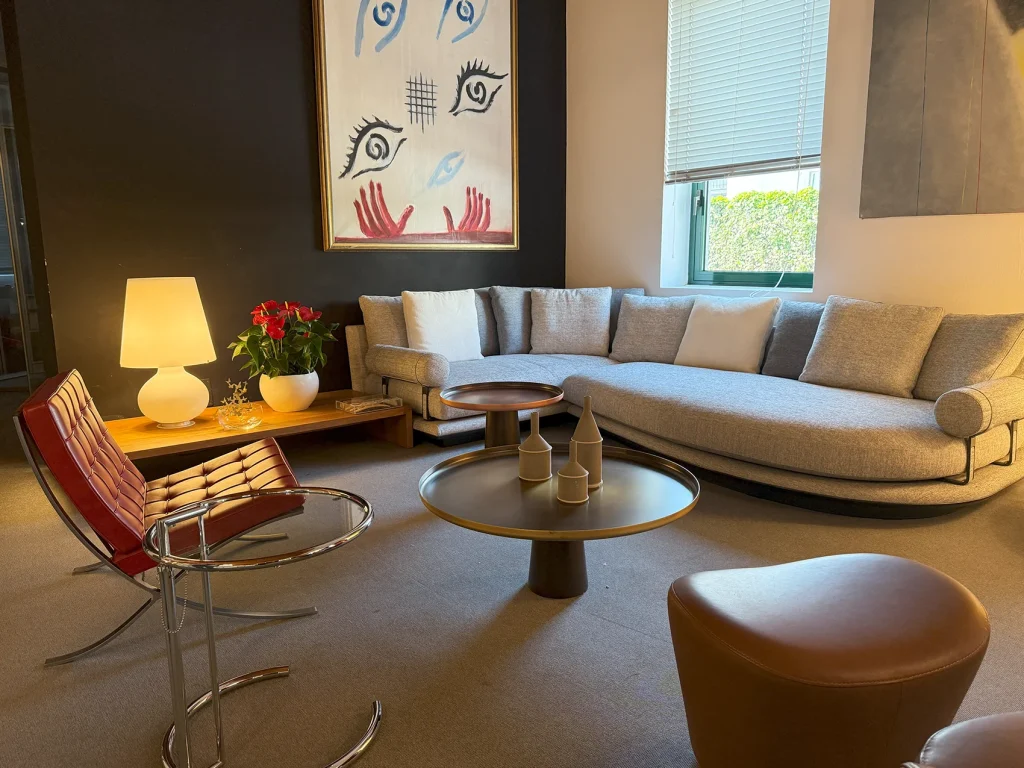 Flouの”Chiaro di Luna”サイドテーブルやpoltronova “Joe”、DESALTOの”Micro Cray”にも再会。そしてAntonio CitterioとFLEXFORMの最後のコラボレーションであるという”CAMELOT”、やわらかなフォルムのB&B Italia”NOONU”ソファ、Monica Armaniデザインの”Allure O’”テーブル、Walnut無垢材の複雑な機構が美しいZanotta(ザノッタ)の”REALE”テーブルなど…殿堂の名作から最新作まで、数えきれない程の魅力的なアイコンが楽し気に集ったようなミュージアム。…そのような印象を受けたショールームでした。