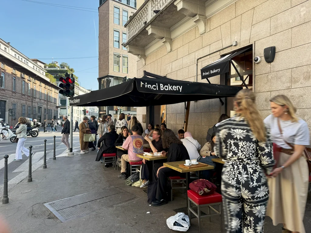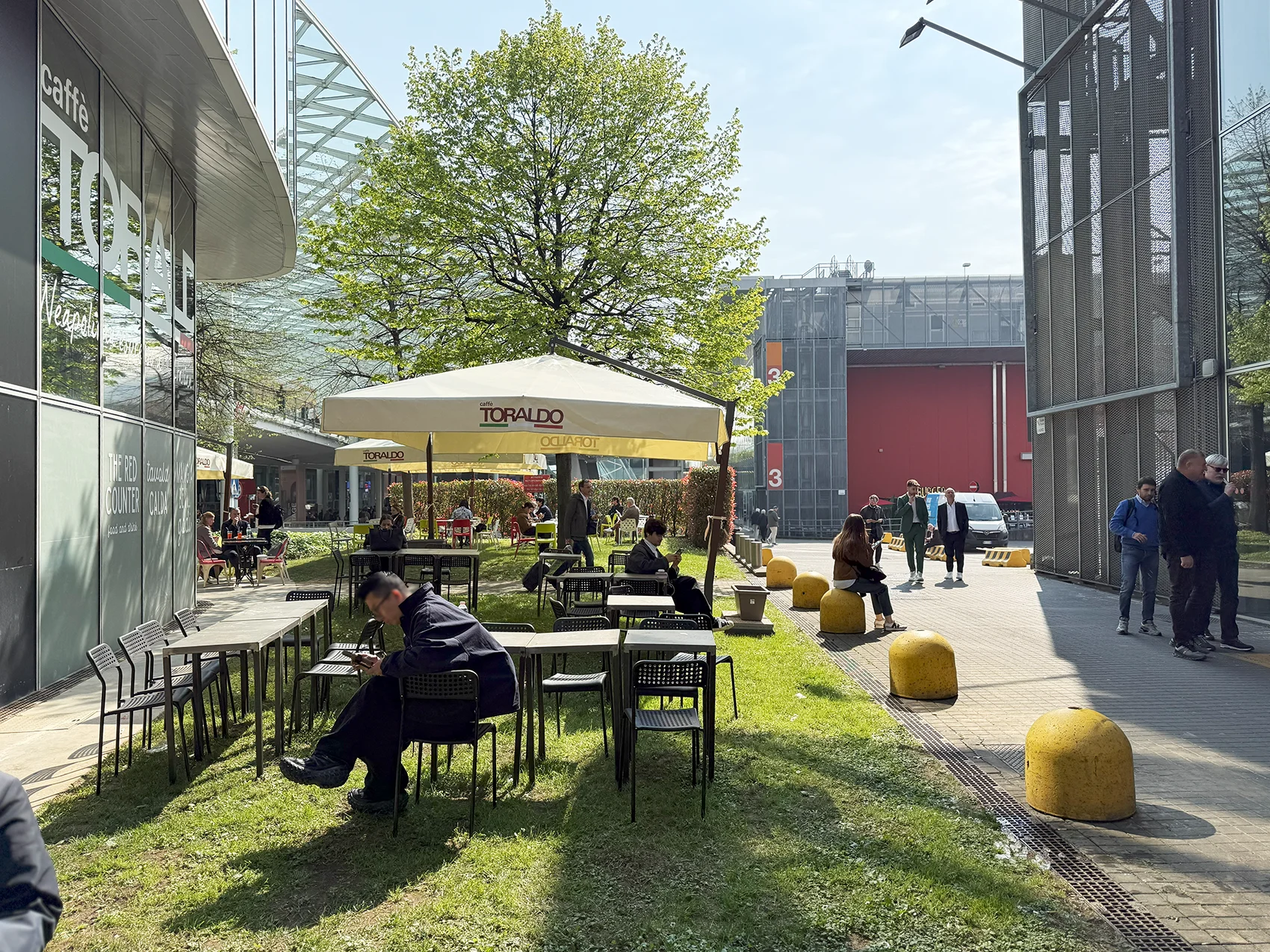 屋外のカフェエリアでの休憩にはぴったりの天気だった
