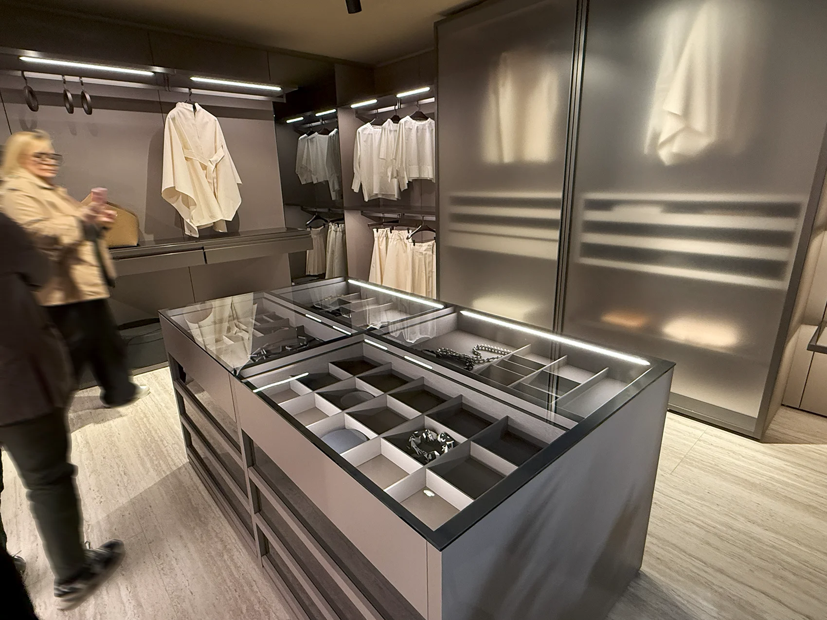 GLAS Italia(グラスイタリア)。2020年東京オリンピックで聖火リレートーチのデザインも手掛けた日本人デザイナーの吉岡徳仁による”Prism glass wardrobe”がとりわけ目を引きました。