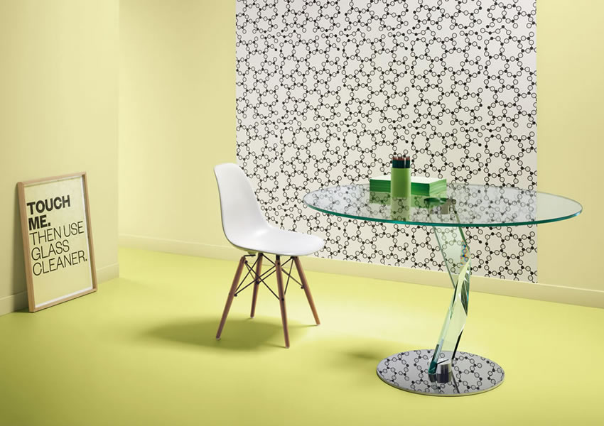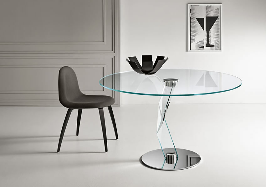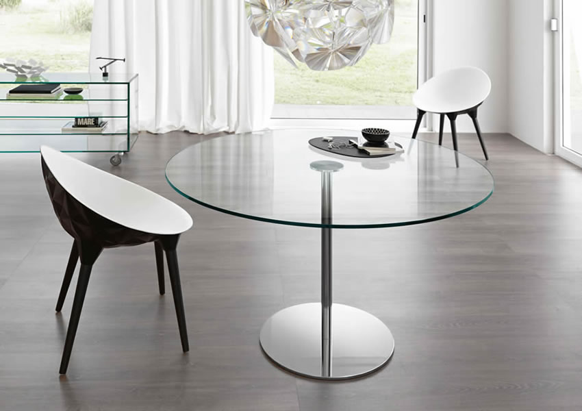 支柱は金属製でクローム仕上げ。天板はエクストラ・クリアガラス。