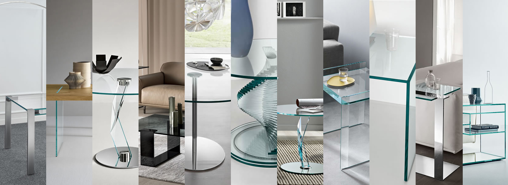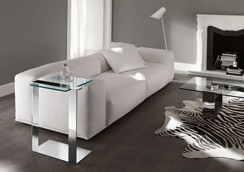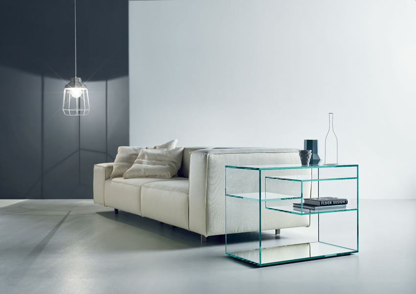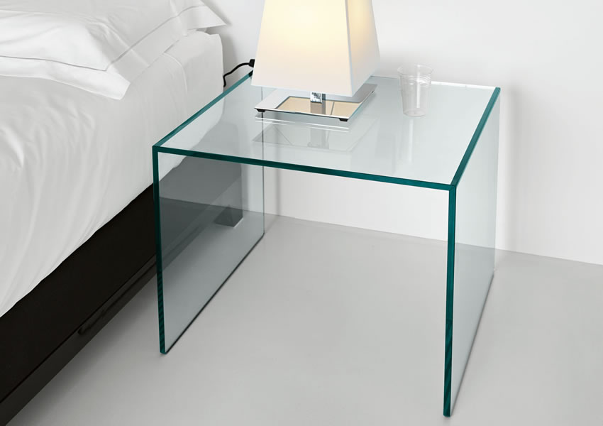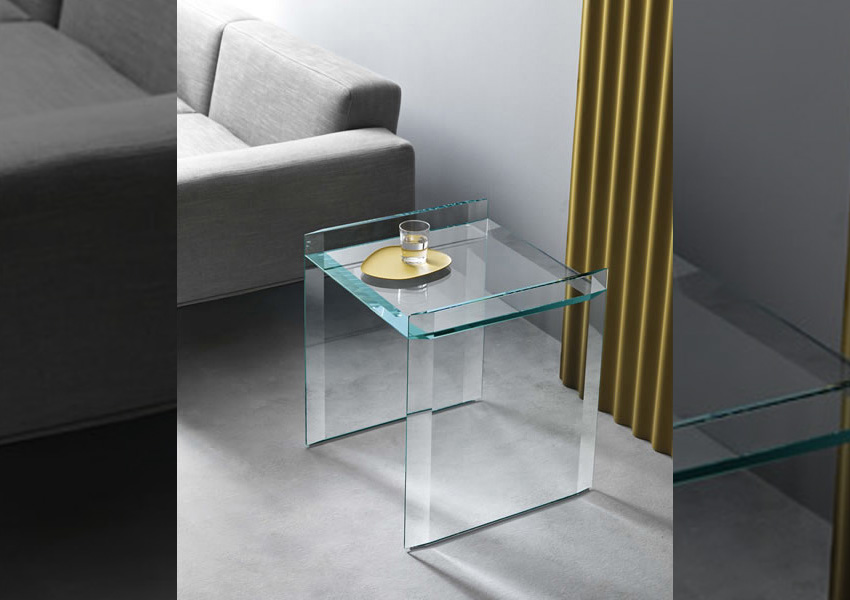 エクストラ・クリアガラスのサイドテーブル。