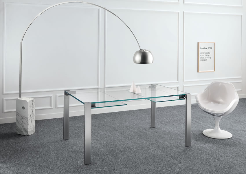 伸長式ガラステーブル。