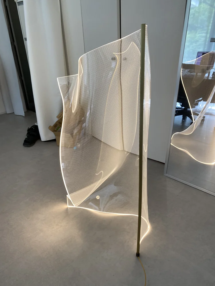 スタンドライトアクリル+金属メッシュとLED光源の組み合わせによって光がまるで布のように柔らかく曲がりくねる独特の、