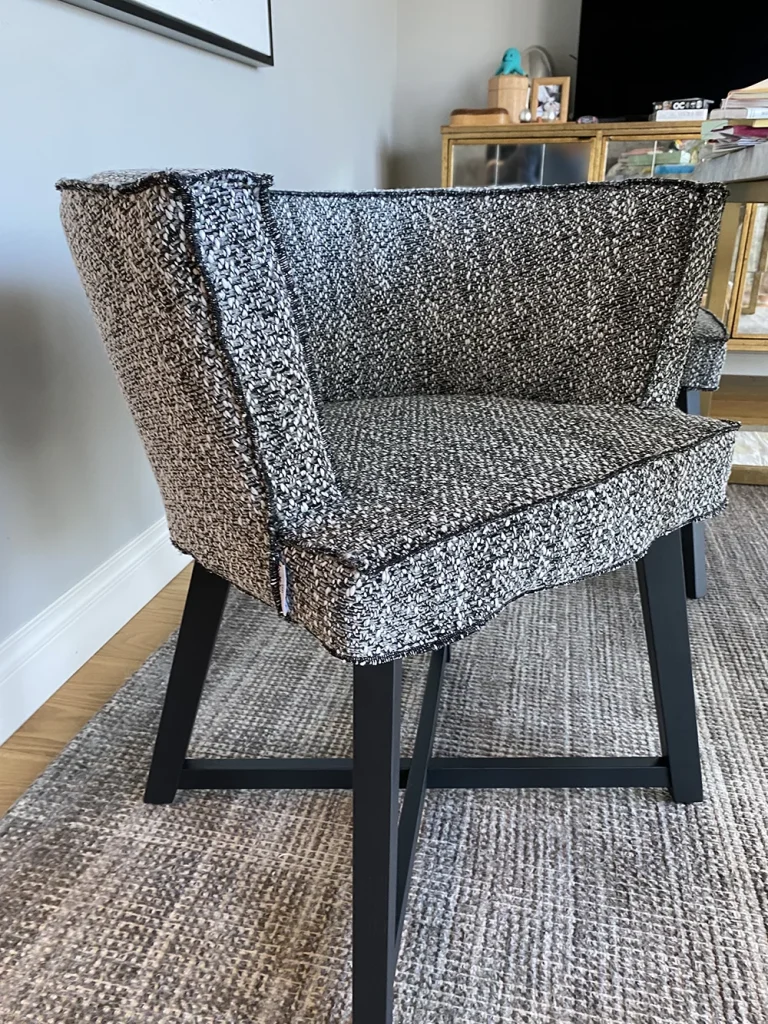 カバー張替え今年2024年初めに張り地を当初の無地からもっとデンマークらしい色・柄のものは無いかとご相談を頂き、 -