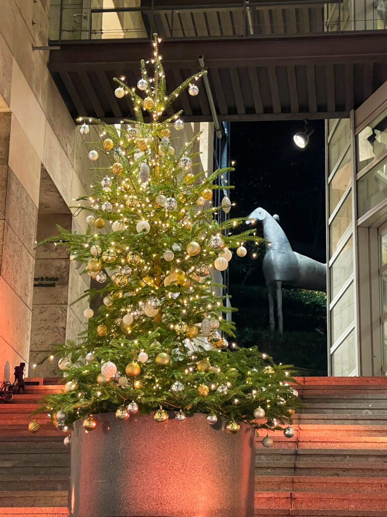 東京デザインセンター馬の彫刻前のクリスマスツリー