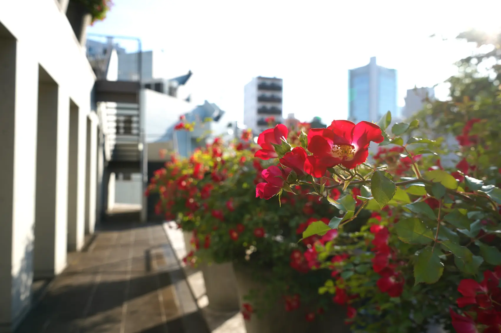 東京デザインセンターのバラ 6F IL DESIGNプレゼンテーションプレイス横のテラスにて photo by IL DESIGN