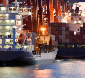 ライトアップされる東京デザインセンターの桜と馬の彫刻