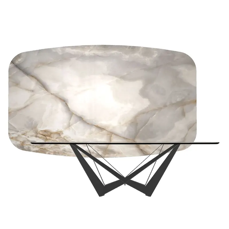 材質: (トップ)セラミックマーブル (KM06 Glossy Golden Calacatta)/ (ベース)スチール (GFM73 Black embossed)