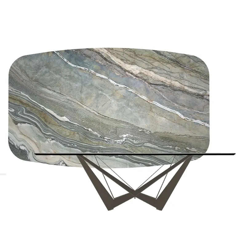 色・柄、仕上げ方等、全てCattelan Italia(カッテランイタリア)の為だけに作成されたオリジナルの”KERAMIK(ケラミック)”は耐用年数が長く、比較的経年劣化が少ない、傷や汚れに強い素材です。Cattelan Italia(カッテランイタリア)の創業時代から積み重ねられた大理石の取り扱い技術の高さが、このケラミックテーブルの作成に繋がりました。「スコルピオは、不思議な”Origami(折り紙)”と光の反射でできた、バランスのとれた幾何学です。」とオフィシャルサイトで謳われている”Skorpio Keramik(スコルピオ ケラミック)”は、丸みを帯びたセラミックマーブルの天板と、大胆な屈折によって美しい光のコントラストを魅せるスチールの脚部とが織りなす、新しいコンセプトのダイニングテーブルです。