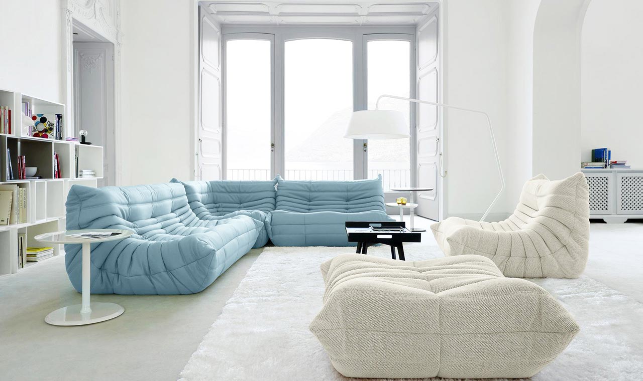 高密度な4種類のウレタンフォームを何層にも重ね合わせ、ヘタリのない構造のトーゴ(TOGO) は、ミッシェル・デュカロワ(Michel Ducaroy)のデザインで、半世紀に渡りリーン・ロゼの象徴とも云える美しいソファです。